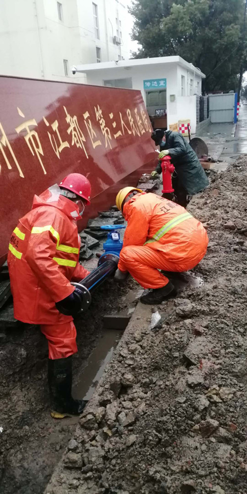 新冠肺炎疫情在全國范圍內爆發以來,我區擴建第三人民醫院作為江都區的“火神山”醫院,隨著病房的增多,用水需求也相應增大,公司下屬揚州龍泉建設工程有限公司按照上級相關要求,配合醫院的建設進度,對原有的自來水供水管道進行擴建改造,切實保障醫療用水需求。