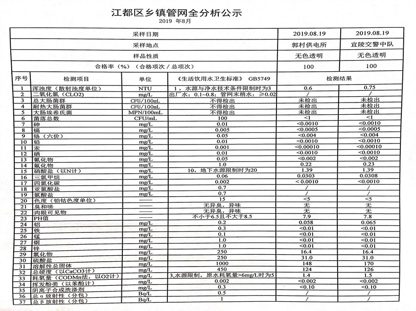 水質(zhì)公示