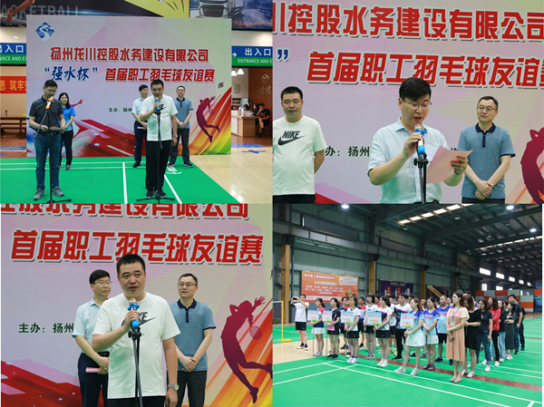 7月4日上午,揚州龍川控股水務建設有限公司開展了以“不忘初心強水務,強身健體助發展”為主題的羽毛球友誼賽,龍川控股集團副總兼公司執行董事張勇,水務公司總經理王智勇等領導班子成員,水務公司及各子公司五支代表隊以及觀賽的干部職工共60余人參加。