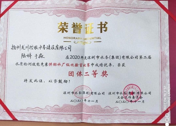 經過5天的激烈角逐,憑借著扎實的理論基礎、嫻熟的現場操作和默契的團隊合作,揚州龍川水務公司陸婷榮獲供排水廠級化驗室理論、綜合比賽“雙一等獎”,陸婷、于淼榮獲供排水廠級化驗室比賽團體二等獎。